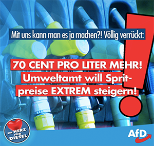 Das Klimapaket ist seitens der GroKo längst beschlossen, die Finanzierung indes noch völlig ungewiss. Jetzt kündigen sich weitere horrende Kosten für die Bürger an. Ein internes Papier des Bundesumweltamtes zeigt auf, dass eine Erhöhung des Spritpreises für Diesel um sage und schreibe 70 Cent beziehungsweise um 47 Cent für Benziner notwendig ist, um das links-grüne Ideologieprojekt ansatzweise stemmen zu können. Wer glaubt, mit den zusätzlichen Milliarden würden sich die immensen Kosten stemmen lassen, der irrt. Es bliebe immer noch eine „Klimaschutzlücke“ von 20 bis 30 Milliarden Euro! Aber nicht nur die Kasse soll klingeln, indem Dieselbesitzer und auch Benziner tüchtig beim Tanken zur Kasse gebeten werden. Alle Privilegien etwa für Dienstwagen und Dieselkraftstoffe sollen wegfallen, ebenso möchte man die Pendlerpauschale abschaffen. Als wäre das nicht genug, soll zusätzlich die Maut für Lkw stark steigen, sowie auf Autobahnen rasch ein Tempolimit von 120 Stundenkilometern gelten. Wie hier die sozialen Härten ausgeglichen…